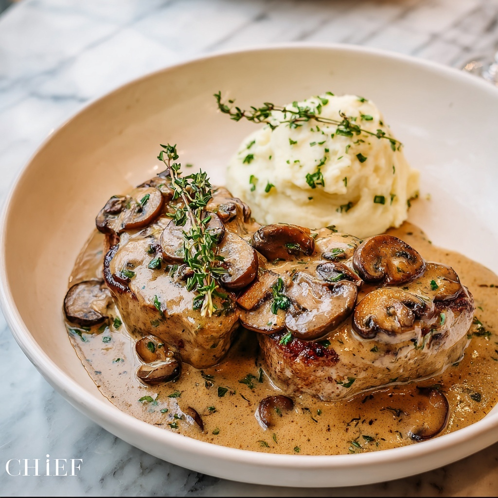 Smothered Pork Chops with Mushroom Gravy is a comforting and flavorful dish where tender pork chops are seared to perfection and then simmered in a rich, creamy mushroom gravy. This traditional family favorite combines savory mushrooms, onions, and a touch of thyme and paprika to create a delicious one-pan meal perfect for cozy dinners.