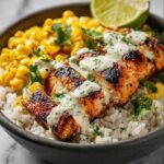 This Street Corn Chicken Bowl recipe is a vibrant and flavorful meal combining tender, spiced chicken, sautéed corn with a smoky char, and a creamy feta-lime sauce over rice. It offers a delicious, easy-to-make dish perfect for lunch or dinner, blending classic Mexican street corn flavors with protein-packed chicken and fresh toppings like avocado and red onion.