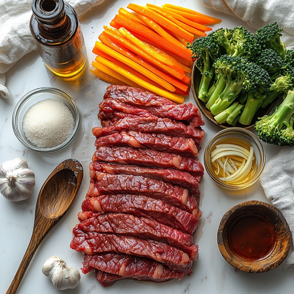 • Flank steak or sirloin, 1.1 lbs: Thinly sliced for quick cooking and tenderness, this is the star protein of your dish.