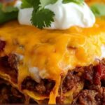 Tortilla Chip Enchiladas combine the crunch of tortilla chips with the rich flavors of seasoned ground beef, enchilada sauce, and melted cheese, all baked to bubbly perfection. This easy and comforting casserole-style dish is perfect for a family dinner and comes with customizable toppings for added flavor.