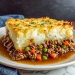 A classic Traditional Shepherd’s Pie featuring a savory ground lamb or beef base cooked with aromatic vegetables and herbs, topped with creamy mashed potatoes baked to a golden perfection. This hearty, comforting dish serves 10 and is perfect for family dinners or cozy gatherings.